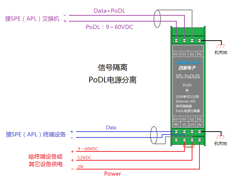 ● SPE(APL)電纜中接入SPL-PoDL01后對原有傳輸距離的影響可忽略不計。