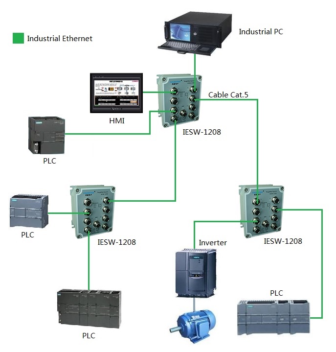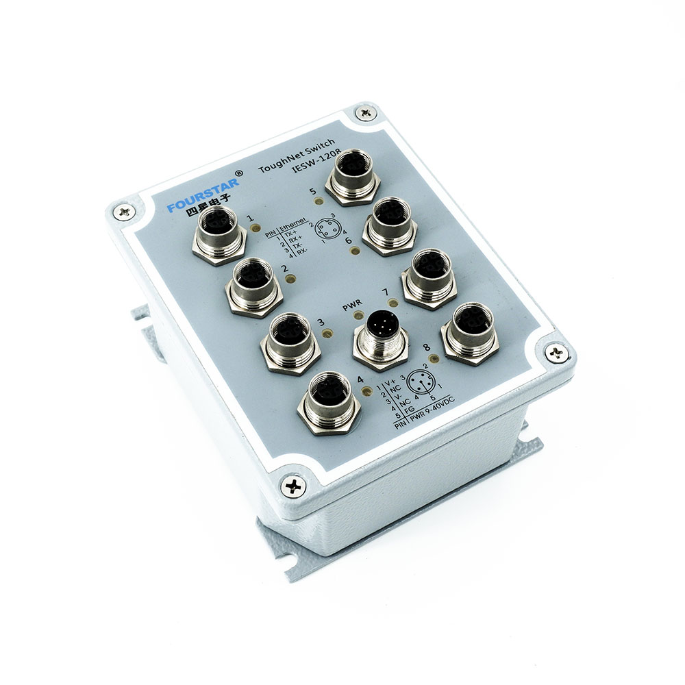 M12接口寬溫堅固型8口非網管工業(yè)以太網交換機。IP67防護等級,符合IEEE802.3,10/100Base-TX工業(yè)以太網標準,網口速率10/100M自適應,具有廣播風暴抑制功能,帶有電源、以太網端口狀態(tài)指示燈。各網口之間及電源端口相互隔離,工業(yè)級標準設計,背板螺釘安裝, -40~+85℃工業(yè)級寬溫型。可廣泛的用于PLC、HMI、VVVF、DCS等各種基于工業(yè)以太網的工控設備。