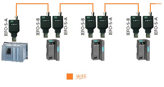 圖1-2 使用IEFO-S-A和IEFO-S-B組成的光纖總線型拓?fù)?/span>