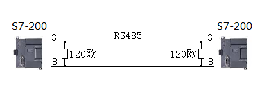 先看一個案例:如圖2-4,兩臺西門子S7-200PLC之間通訊,電纜長度十幾米,沒有120歐終端電阻時通信正常,有120歐終端電阻時則不能通信。