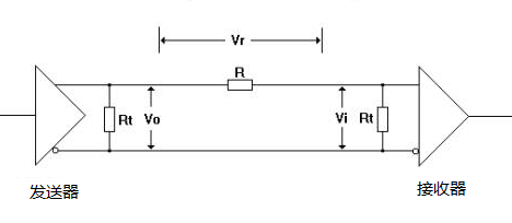 圖中:Rt為終端電阻,Rt=120歐;R為雙絞線電纜電阻(二根線的電阻),阻值由線路的長度和粗細確定;Vo為CAN發(fā)送器輸出電壓,當接上終端電阻Rt時,Vo=2V;Vi為CAN接收器的輸入電壓,Vi≥0.9V時信號有效。