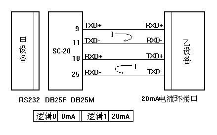 RS232/TTY(20mA電流環(huán))轉換器,全雙工,最高速率9600bps,無需供電。
