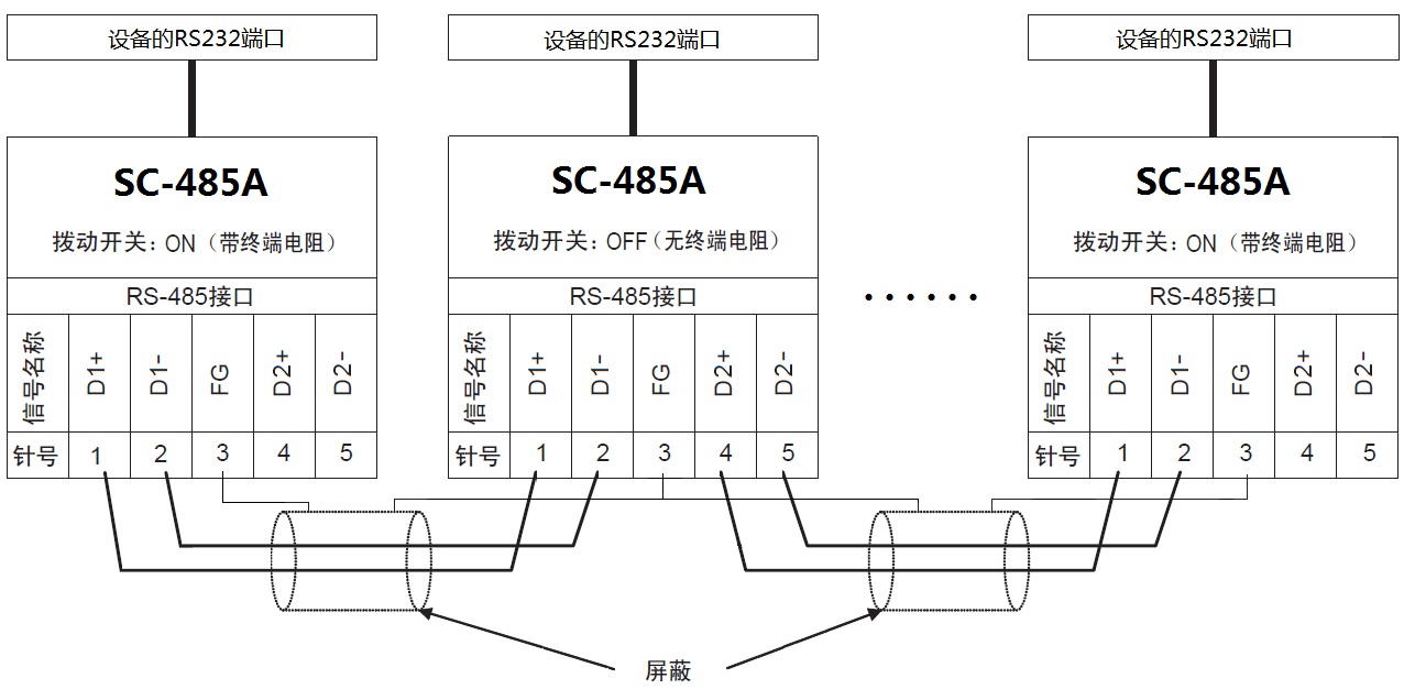 ● SC-485A的輸入阻抗支持多達64個節(jié)點的RS485連接組網(wǎng)。