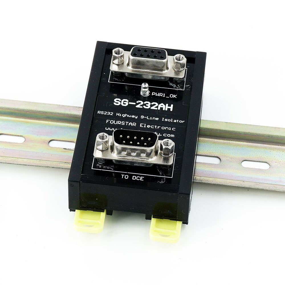 RS232全線高速隔離保護(hù)器。僅需一只串接于通訊電纜之間。全線制(九線隔離),傳送RS232全部信號,用戶可任意使用3~9線,全雙工,無需供電,最高速率1Mbps,隔離電壓3000Vrms,DIN35標(biāo)準(zhǔn)導(dǎo)軌安裝。