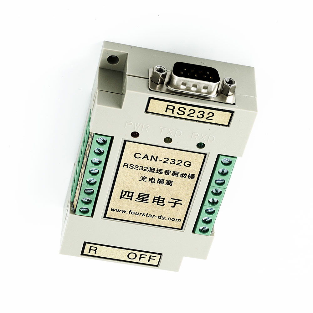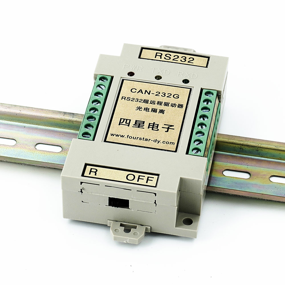 RS232光隔離超遠(yuǎn)程驅(qū)動(dòng)器,采用不改變RS232協(xié)議(軟件)的CAN總線驅(qū)動(dòng)器,只需二根線即可將RS232通訊距離延長到10km(4800bps時(shí))、5km(9600bps時(shí)),支持110個(gè)RS232節(jié)點(diǎn)組網(wǎng),解決了野外使用中繼器加電源的麻煩。外接5V電源。外形為導(dǎo)軌安裝的工業(yè)結(jié)構(gòu),帶有指示燈。