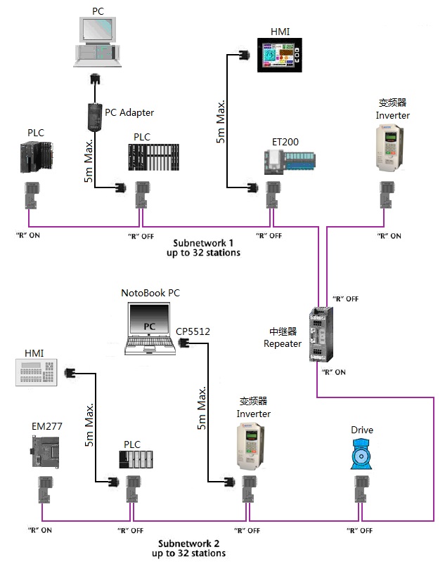 ● 各個(gè)傳輸速率下通信電纜允許的最大長度符合PROFIBUS標(biāo)準(zhǔn):