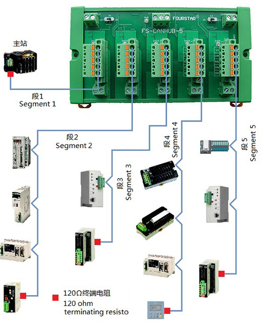 ● 每個(gè)CAN端口在其內(nèi)部的CANH和CANL之間已經(jīng)安裝有120歐終端電阻,用戶不必再在端子上接入120歐終端電阻。