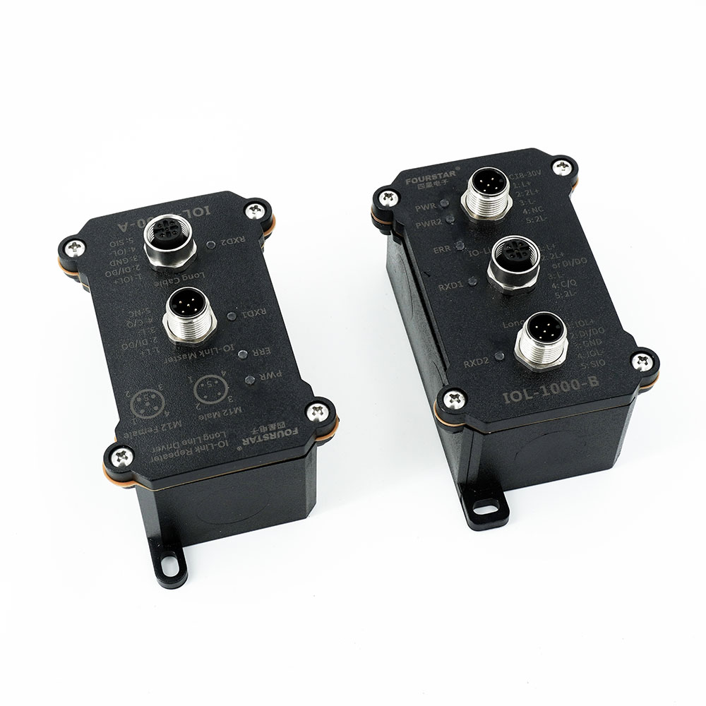 IO-Link長線收發(fā)器。將IO-Link通訊距離延長到1000米,分為A、B兩個模塊,成對使用,通訊速率COM1(4.8Kbps)、COM2(38.4Kbps)、COM3(230.4Kbps)自適應,支持IO-Link、SIO、DI/DO、A類端口、B類端口多種工作方式,即插即用免設置,18V~30VDC寬電壓供電,IP67防護等級。