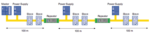 電纜最大傳輸距離 | 每增加一個中繼器增加通訊距離100米。 |