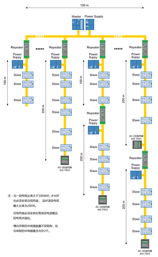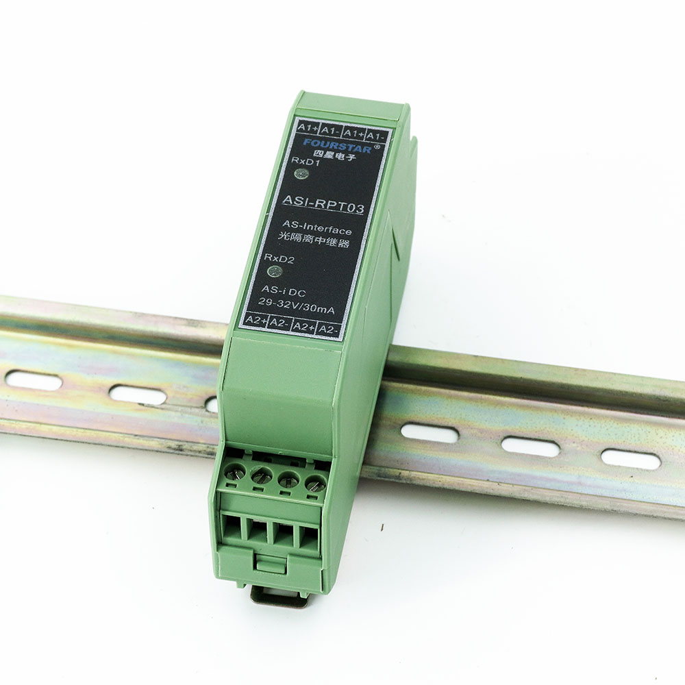AS-Interface中繼器。將AS-i總線通訊距離延長100米,光耦隔離,最高隔離電壓1500Vrms(可定制最高隔離電壓為5000Vrms并符合礦用安規(guī)的產(chǎn)品)支持AS-Interface Spec.V3.0并向上和向下兼容,AS-i電壓范圍DC29.5~31.6V,消耗電流<30mA。支持點對點、總線型和星型連接拓撲,即插即用免設(shè)置,防護等級IP20,DIN35標(biāo)準(zhǔn)導(dǎo)軌安裝。