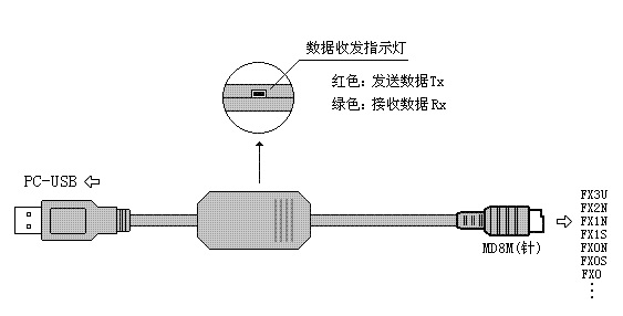 三菱FX3U和FX2N/FX1N/FX0/FX0S/FX1S...系列PLC的USB編程電纜,USB/RS422接口,帶通信指示燈,最大通信距離可達2公里。