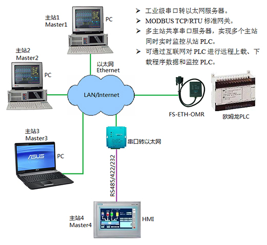 歐姆龍PLC串口轉以太網適配器。用于將歐姆龍PLC通過RS232口連入以太網或互聯(lián)網,不改變現有通訊協(xié)議和軟件。并支持多達96個主站(如計算機、觸摸屏、PLC主站等。)同時實時監(jiān)控PLC,還可通過互聯(lián)網異地遠程操控維護PLC。工業(yè)級設計,網口-串口隔離,-40~+85C工作溫度,DIN35標準導軌安裝。